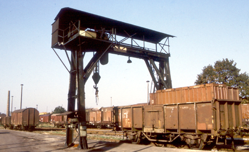 Standort: Ladestraße Gleis 150 Baujahr: 1898 Hubkraft: 20t Hubhöhe: 5000 mm Fahrbereich der Laufkatze: 7400 mm Stützweite: 6700 mm