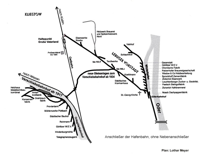 Ab 1957 erfolgte die Angliederung der Hafen- und Güterbahn an den VEB Binnenhafen Oder mit Sitz in Eisenhüttenstadt.