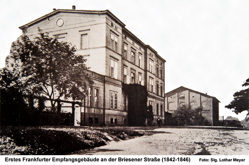Zur Vorgeschichte: Bei den ersten Entwürfen zu einer Eisenbahn zwischen Berlin und Frankfurt (Oder) bestand der Wunsch den Bahnhof so nah wie möglich an der Oder anzulegen. Sehr große Höhenunterschiede wären dabei zu bewältigen gewesen. Letztendlich, erst im Jahr 1842, wurden als endgültige Lage die Kiesberge an der heutigen Briesener Straße bestimmt.