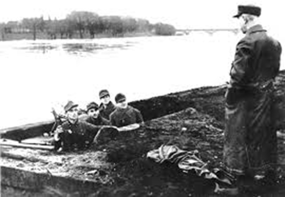 Mitte Februar gruben sich Volksturmleute in der Hafenstraße ein.