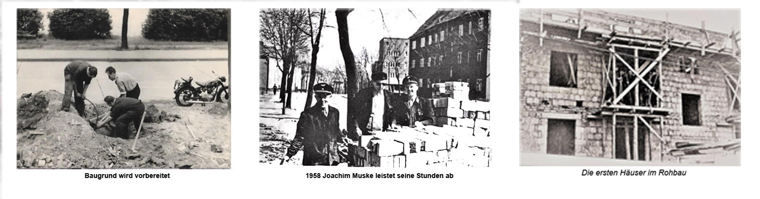 Ich wurde am 6.12.1957 AWG-Mitglied und sofort in den Vorstand gewählt. Die Aufbaustunden leistete ich zunächst im östlichen Teil der Zschokkestraße ab, wobei überwiegend Erdarbeiten auszuführen waren. Nach getaner Arbeit sahen wir uns die fast fertigen Häuser an, waren angenehm überrascht von der Attraktivität der Gebäude und hofften, diese auch in der Rathenaustraße vorzufinden. Die Lage in der Zschokkestraße war günstig, alle Balkone nach Süden ausgerichtet und kaum Straßenverkehr. Günter Hähn erreichte, dass auf der gegenüber liegenden Straßenseite ein großer Parkplatz für Pkw geschaffen wurde.