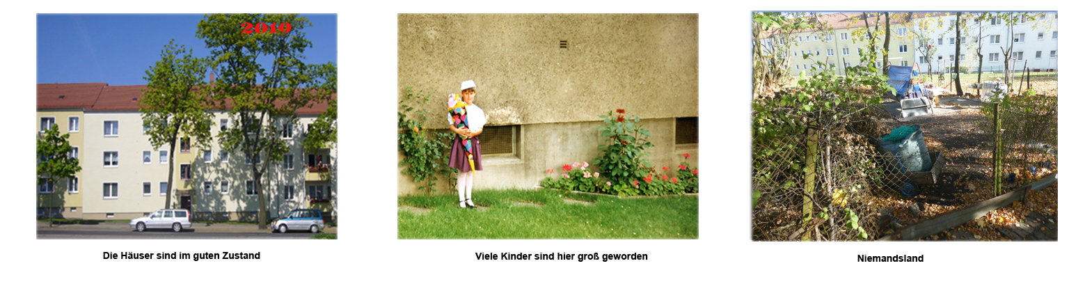 Die Grünfläche vor Haus 61 war von einem Kollegen nicht ordentlich gestaltet worden. Er hatte Bauschutt vergraben, versehen mit einer dünnen Schicht von Mutterboden, worauf das Gras nur spärlich wuchs. Hartmut Priewisch und ich haben vom 24.8 bis 20.9.1989 diese Fläche saniert.